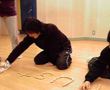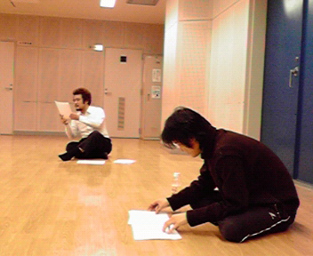 みのりちゃんとまちこちゃん。 真面目です。 「こんな・・・できません!」 「あはは~でも、みのりちゃんもやってね。」 「ニイさん・・・へん・・・」 「あはは~でも、まちこもやってね。」 酷な宣告をするあたし。 そうこうしていたら、メンバーがそろってきたので恒例の豆まきを。 P-nutsは2月に結成したので、お誕生会もします。 鬼役は代表。代表の1年で一番大事な仕事です。 逃げまどう。 みんな投げるのと追うのに必死すぎて、意外と静か・・・ これまた恒例。 豆文字。 しれ~っと綴りを間違う代表。 非難ごうごう。 完成したら囲うのです。 欠席メンバーはこれを稽古日記で見て悔しがるのです。 へんな団体・・・ その後、稽古。 ここでもキャラ全開の代表。 誰も追い付けない・・・